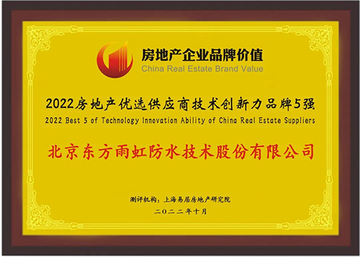 - 東方雨虹上榜“2022房地產優(yōu)選供應商技術創(chuàng)