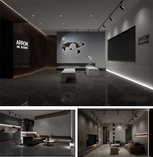 箭牌復合輕紋磚全國門店864家,為消費者提供及時周到的服務。標準化展廳構建,總部展廳升級優化實現了情境體驗化、體驗優質化,為消費者帶來潮流時尚的場景體驗。