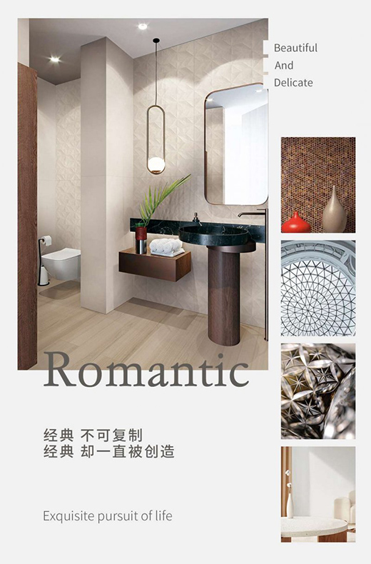 羅曼締克旨在鑄造室內空間漫不經心的美,匯入潮流色彩、注入高級質感、用凸凹模具的巧妙手法,讓搭配不拘一格。拼接鋪貼更添了一絲新穎,看似簡單卻暗含繁復,既有差異美感,又有留白藝術。