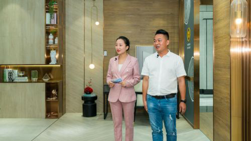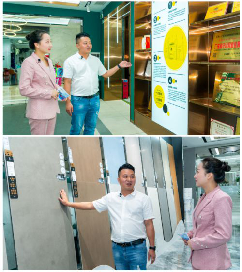 在直播中,主持人和集團設計部設計總監謝春新帶領屏幕前的觀眾一起“游覽”展廳,對大板區域、巖板區域、木紋磚區域幾大類產品進行了詳細的介紹,不少云上觀眾對產品的性能表達了支持與肯定。