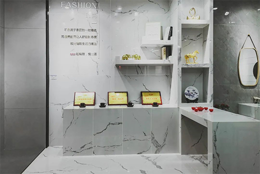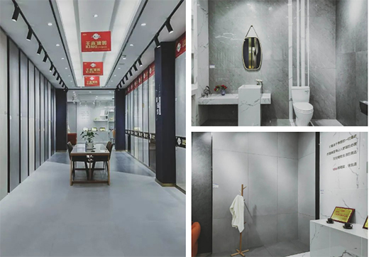墊江王者地處建材市場的核心地段,因地制宜、定位需求,精準發力,以花色多樣、應用廣泛的900x1800mm、750x1500mm、600x1200mm大規格產品作為拳頭產品,打開銷售通路。輔以800x800mm產品配套銷售,打造全、優、精的品牌形象,快速、高效地搶占市場,贏得先機,從而在競爭激烈的市場環境中脫穎而出!