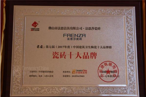 法恩莎榮獲“陶瓷十大品牌,瓷磚十大品牌”