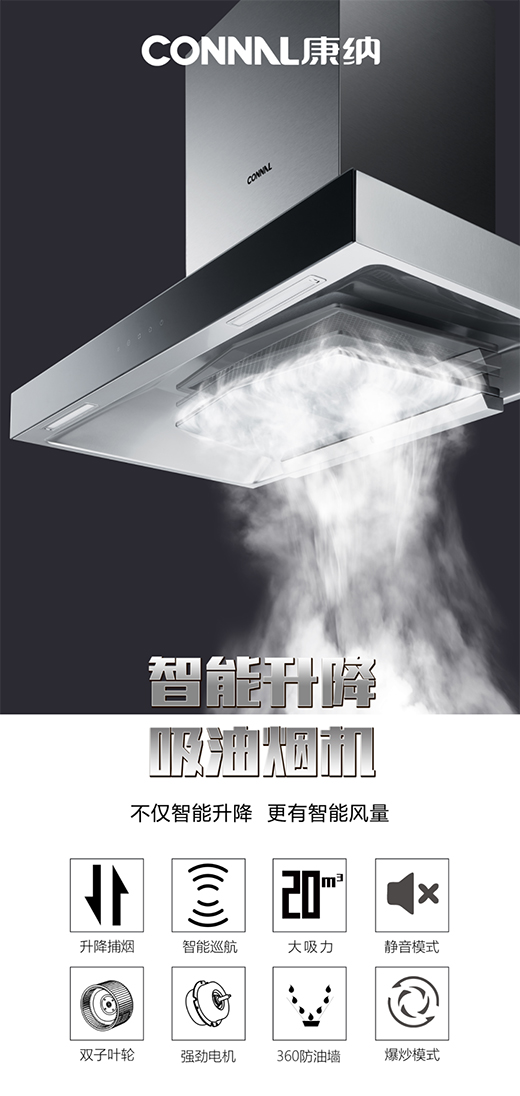 康納始終以專業的態度和工匠精神研磨每一款產品。2016年,推出行業首創智能升降油煙機,引領歐式油煙機的革命性設計,具有劃時代里程碑意義。
