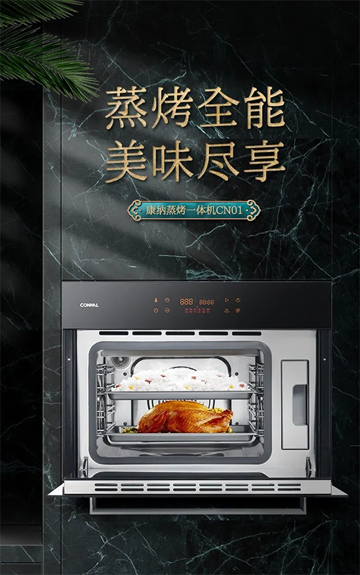 康納CN01蒸烤箱擁有十二大烹飪模式,營養蒸、香酥烤,30L黃金容量,360°立體循環秒速鎖鮮,讓食物全面受熱,外酥里嫩,美味營養。