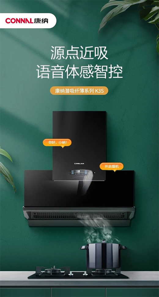 康納團(tuán)隊(duì)耗時(shí)一年打造大吸力K3S油煙機(jī)。這款明星產(chǎn)品采用潛吸式跨界設(shè)計(jì),低位攔截油煙,解決廚房油煙問(wèn)題,帶來(lái)清新空氣。23m3/min的大風(fēng)量搭載450Pa強(qiáng)排風(fēng)壓,無(wú)論樓層多高都能暢通無(wú)阻。此外,K3S采用全新智能體感+AI語(yǔ)音智控,還附帶一鍵自動(dòng)清洗、保溫置物臺(tái)等多動(dòng)能、人性化的設(shè)計(jì)。