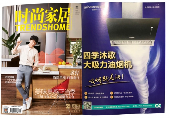 2018年5月,隨著新一期《時尚家居》雜志的出版面世,廚電專家四季沐歌的已經家喻戶曉的“四季沐歌大吸力油煙機吸煙就是快”的平面廣告正式登錄這本全球家居行業的領導刊物。