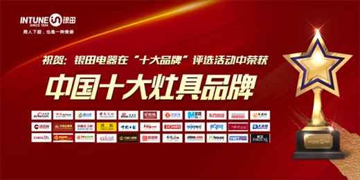頭條:銀田電器奪得“中國十大灶具品牌”等三項大獎