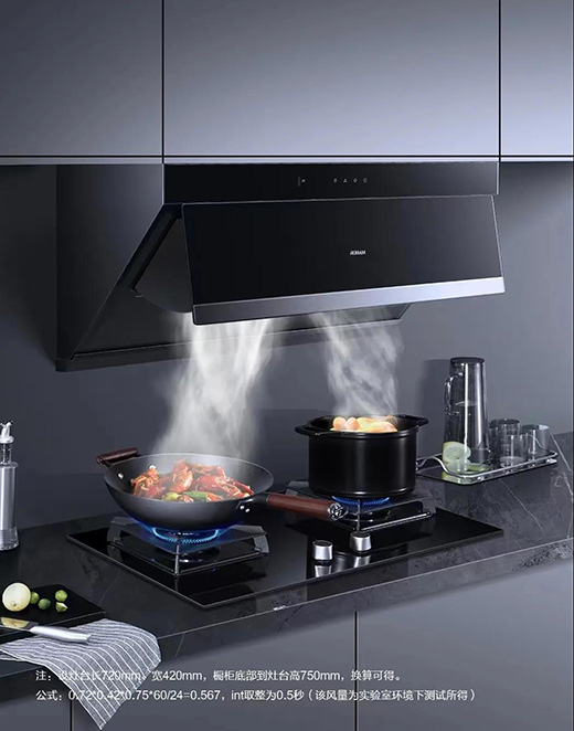 烹飪時,瞬間升騰的油煙一哄而起,在極短時間內(nèi)就向四面八方“逃竄”,讓人感到措手不及。傳統(tǒng)煙機只能吸收部分油煙,還是會有大量油煙從兩側彌漫開來。