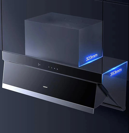 老板三面靈攏大吸力油煙機5306S擁有323mm的黃金比例主機徑深和353mm的整體機身深度,適配市場主流的標準櫥柜,新裝換裝都能完美貼合。