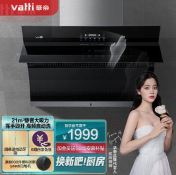 華帝(VATTI)抽油煙機 側吸式 家用靜音吸油煙機 21立方大吸力 智能揮手智控 高頻自動清洗 以舊換新 i11135
