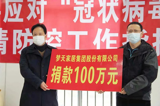 1月29日,在集團董事長余靜淵先生的帶領下,夢天家居集團股份有限公司通過慶元縣慈善總會捐出首批款項人民幣100萬元。該筆捐款將用于支援肺炎疫情防控工作,采購短缺醫療設備及物資,以及對一線醫護人員的支援和幫助,為更好打贏抗擊新型冠狀病毒戰役做支援。