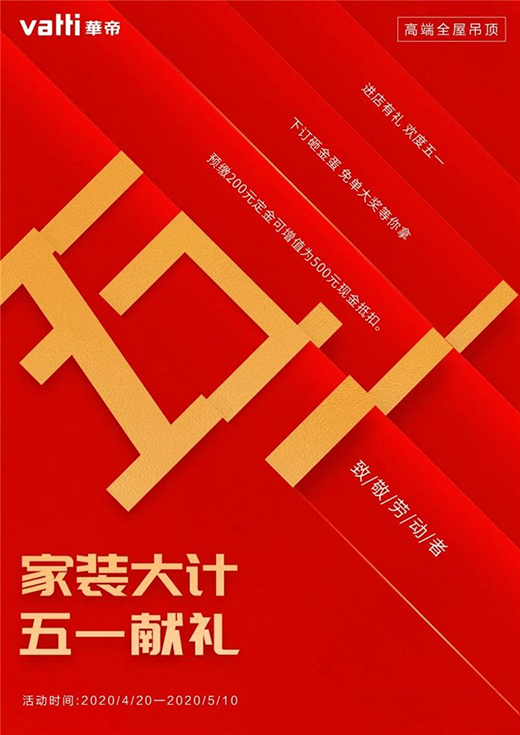 華帝集成吊頂五一大促重磅來襲!五重驚喜 一降到底!