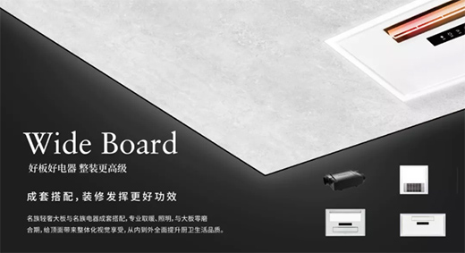 名族輕奢大板與名族電器成套搭配,專業取暖、照明,與大板零磨合期,給頂面帶來整體化視覺享受,迅速提升廚衛生活品質。