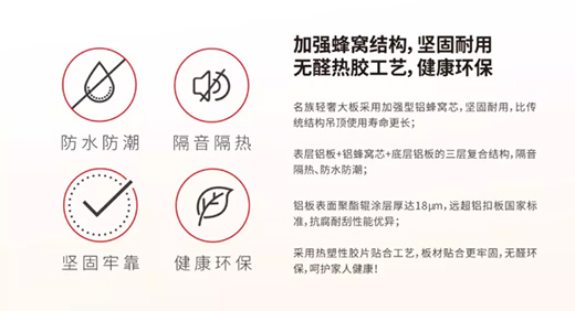 原材料方面,名族大板以鋁材為基材,可回收利用的環保材料,保證產品綠色環保。