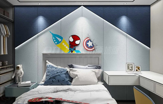 在兒童房的床頭背景中,藍色帶來充滿想象的空間。柔和之中帶著點童真色彩,彰顯空間活力和溫馨舒適之感。