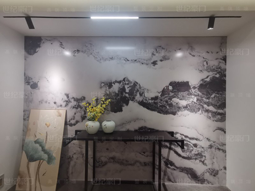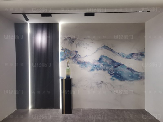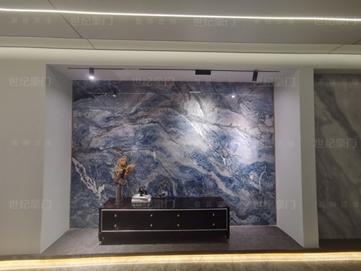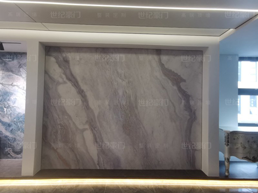 世紀豪門超薄人造石巖板是利用精密的原紋掃描采集技術和高清的數碼噴墨打印技術,將真實的大理石紋理、藝術紋理和表面工藝與高分子環保人造石基材結合,實現墻板領域新材料技術的應用。