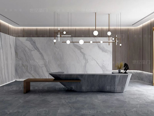 世紀豪門吊頂·墻面:超薄人造石數碼巖板實現隱形縫效果