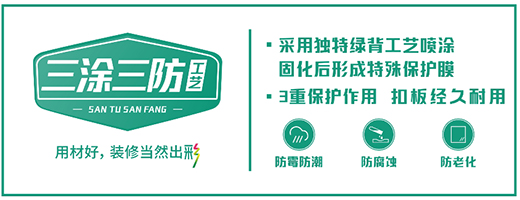 在衛生間潮濕的環境下,相比于其他材料,海創吊頂采用三涂三防工藝,防霉防潮、防腐蝕、防老化,3重保護作用,從而更好的保護電器,使之不受潮。