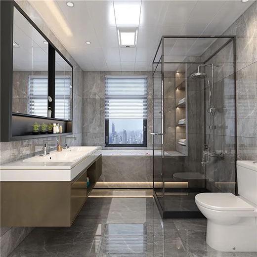首選,一定要裝吊頂。衛生間用水比較頻繁、水流量大,常年都較為潮濕。選擇衛生間吊頂材料時,第一件事就是選擇防潮材質的。