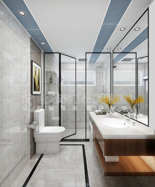 與常規(guī)鋁扣板相比,天境系列大板不需要太多的拼接,從視覺(jué)上看,間隙減小了,并且整體空間感和時(shí)尚感更強(qiáng)。