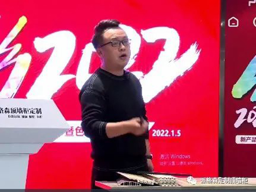 市場部吳經理上臺發布第九代SI,預示派格森正式進入了頂墻柜定制的新紀元。第九代SI通過4個維度表現:一是色彩視覺藝術,二是色彩與產品的融合,三是年輕化的風格調性,四是頂墻柜的場景體驗。色彩門頭,以藍色為底,醒目的品牌標志,自發光字體,整體簡約精致,一目了然。派格森專賣店打造集家居體驗,交流,展示,銷售,等于一體的生活家居體驗館。