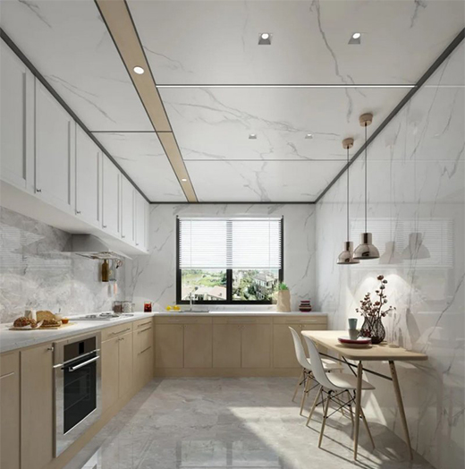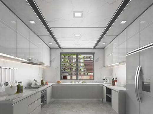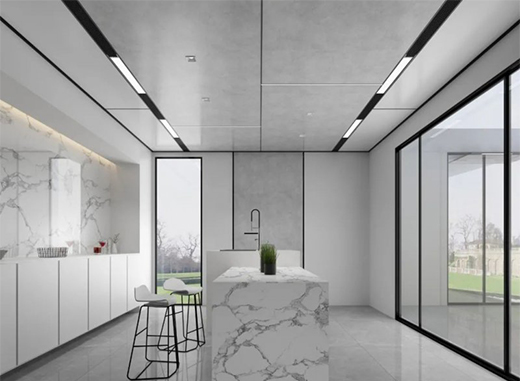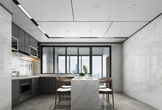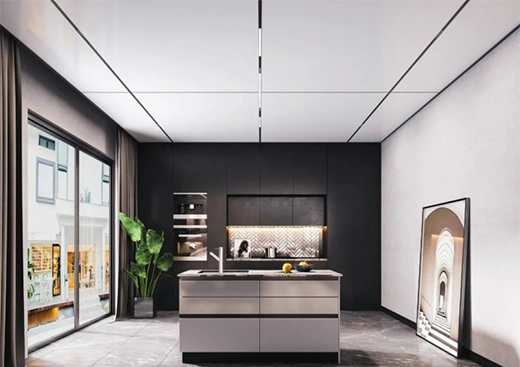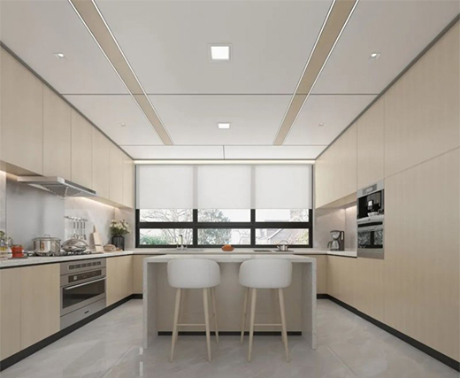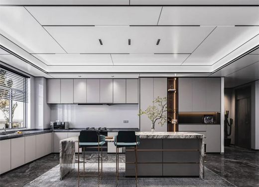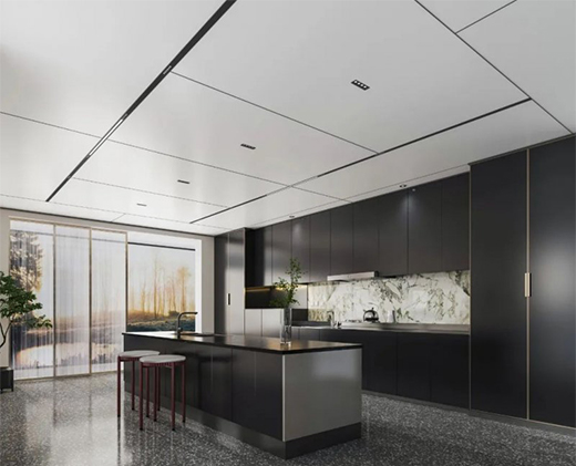 關(guān)于廚房吊頂?shù)难b修,更多的是對設(shè)計的把握和對空間的理解與布局,歐美蜂窩大板通過與型材線梁的完美組合為消費者帶來不一樣的視覺空間體驗,它可以按照我們的空間需求任意裁切、組合,其產(chǎn)生的拼接和縫隙遠遠少于傳統(tǒng)吊頂,降低了板材的損耗,更加契合全屋整裝的需求,使現(xiàn)代空間裝飾呈現(xiàn)更加整體的效果,完美適配各種家裝風格。