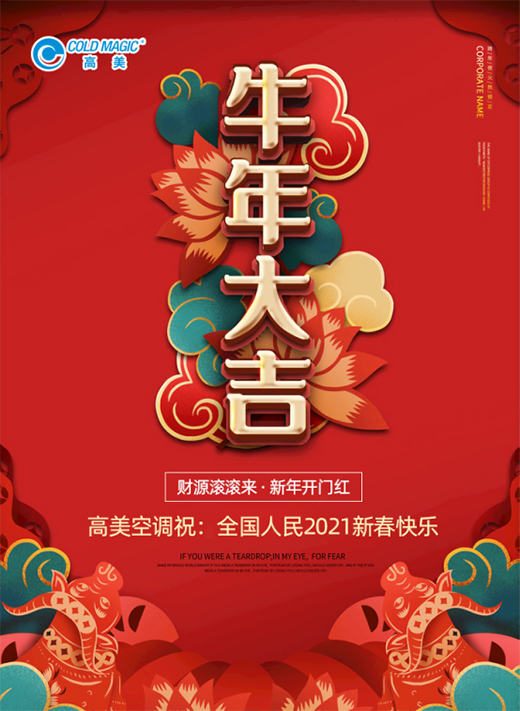 如今,在這辭舊迎新的重要時刻,廣東高美空調設備有限公司特別向多年來為企業的發展艱苦奮戰的全體員工,向與高美并肩作戰、共同成長的加盟商、合作伙伴,以及始終關心高美的建設與發展的社會各界朋友,致以衷心的感謝與誠摯的祝福。祝大家在新的一年里,萬事如意、事事順心、步步高升、大展鴻圖!
