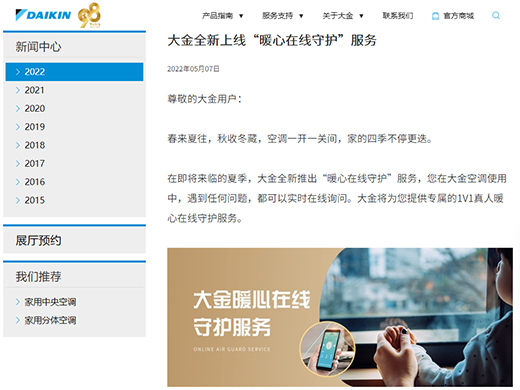 - 服務(wù)模式再升級,大金空調(diào)全新上線“暖心在線守護(hù)”服務(wù) - 2022/05/09