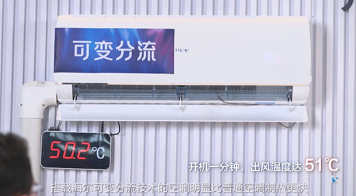 那么海爾“潮汐空調(diào)”的表現(xiàn)如何?兩臺(tái)空調(diào)同時(shí)開(kāi)機(jī),一分鐘后,海爾“潮汐空調(diào)”出風(fēng)溫度達(dá)到51℃,而普通空調(diào)只有47℃。“這邊的溫度變化特別快”,通過(guò)不斷對(duì)比發(fā)現(xiàn),在低溫環(huán)境下,海爾“潮汐空調(diào)”依然具備更快的制熱速度、更好的制熱效果,“這個(gè)溫度吹出來(lái)的風(fēng)制熱效果肯定非常好,屋里邊很快就能暖和起來(lái)!”
