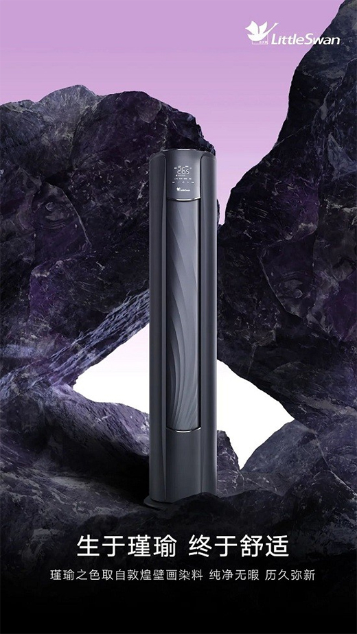 新消費(fèi)時(shí)代,用戶不僅僅極度關(guān)注產(chǎn)品的功能體驗(yàn),對(duì)產(chǎn)品外觀顏值也有了更高的要求。在這一洞察基礎(chǔ)上,小天鵝空調(diào)“本色”系列汲取敦煌壁畫中大量使用的明玉青金石顏色,從青金石色系中選取了最能代表“本色”的顏色,并結(jié)合青金石的古稱命名——“瑾瑜藍(lán)”,作為本色系列空調(diào)的代表顏色。敦煌壁畫中大量使用瑾瑜藍(lán),是因?yàn)殍に{(lán)是千年不褪色、純粹的顏料,更顯持久、本真的特性,而這也完美詮釋了小天鵝本色系列空調(diào)品質(zhì)、健康、除菌的本真內(nèi)涵。并且,瑾瑜藍(lán)的復(fù)古風(fēng)色調(diào)融入小天鵝本色系列空調(diào)時(shí)尚大方的設(shè)計(jì),也讓空調(diào)成為用戶家居美學(xué)的一種彰顯。