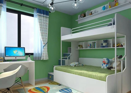 第四套是深綠色+白色的設計,深綠色的墻面干凈沒有花紋,不會讓小孩子的情緒有太多波動。