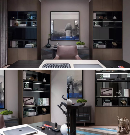 書房裝飾品,在光、色的配合中,中分具有藝術魅力和人文溫度,家私與精致藝術品和諧搭配,讓人聯想到居住者的精神與氣韻。