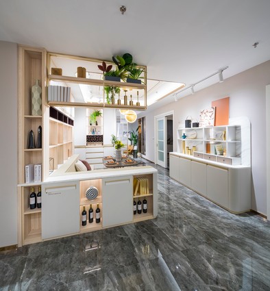 索菲亞全屋定制輕奢館分為公共區與戶型區,設計面積約680㎡,在每個區間打造不同的輕奢調性。從獨立空間到戶型;從產品設計到室內表現;每個環節都是精雕細琢;從硬裝造型到材料表達;從軟裝挑選到風格屬性,每個細節都經過了審慎思考。