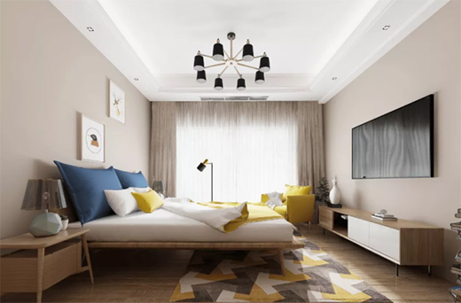 孩子的次臥空間更是簡單,除了一張休息的床以外,實木的裝飾書架占據了主導位置,集中的動線分布強化了主要立面的連續性。窗臺改造成書桌臺,學習累了可以隨時抬頭看看窗外的景色。(也可以尊重孩子的選擇,設計的與整體家居風格不同,獨樹一幟,讓孩子自己來決定臥室的風格與布局)