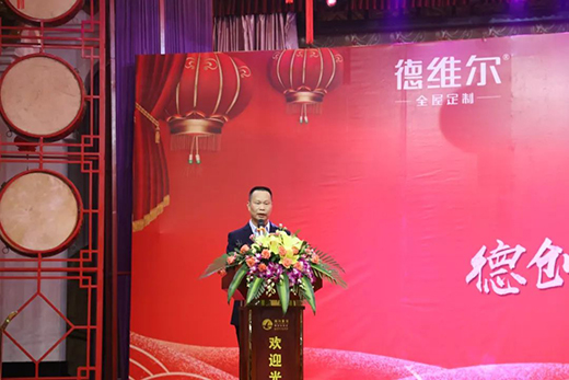晚宴開始,德維爾全屋定制董事長殷衛洪先生給全體家人致詞,借此機會感謝了家人們在過去一年的辛勤付出,并送上了真摯的新春祝福。同時也表達德維爾在未來會為家人們創造更好的工作空間,與家人們一同創造更好的未來!