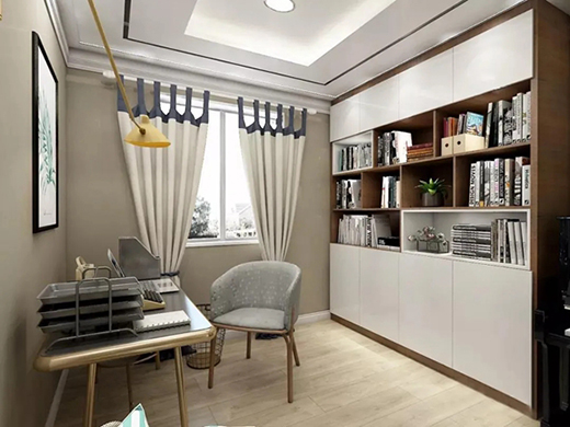 ▲書房整體十分大氣,大量儲物格造型增加了空間層次感,上下掩門柜增加空間功能性,提供了一個溫馨的辦公、學習空間。