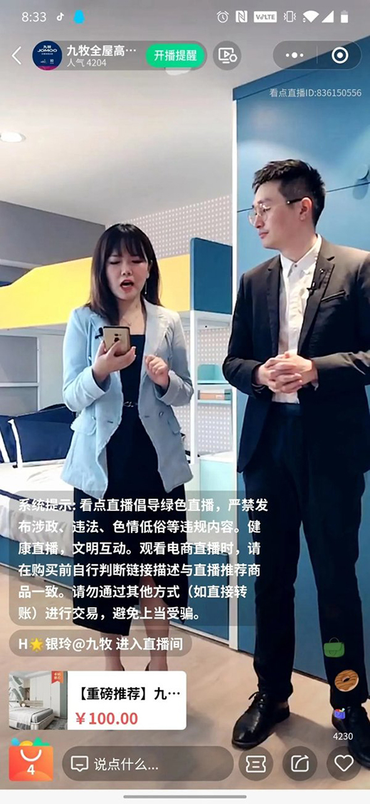 九牧全屋高端定制夢想直播間