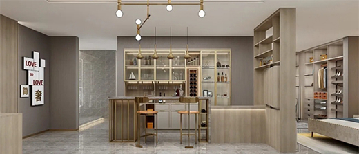 餐廳整體是由開放式酒柜組合而成,簡單低調的設計充分體現了“簡奢主義”允許生活的簡單,但也決不放棄生活的品質的理念。