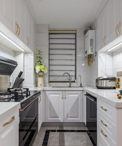 輕奢風格多以深色為主,在邊框處加上金屬銅元素,提升整體的空間質感。喜歡有玻璃質感的會選擇玻璃門作為裝飾,體現一種高品質的韻味生活,儲物輕松搞定又能顯得簡約時尚。
