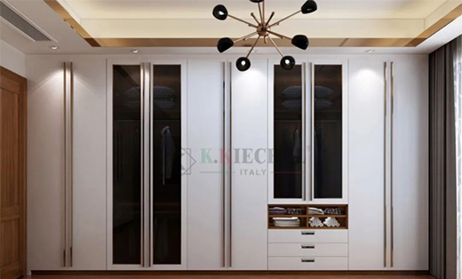設計本身就是以居住的純粹性來考慮功能本身,但無論裝飾和美學以何方式呈現,它不應該脫離使用者本身。因此設計師設計出這款簡單但又不單調的輕奢款四門衣柜,搭配恰到好處的一盆綠植,讓人愿意身處在這樣的空間中。