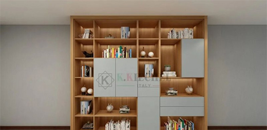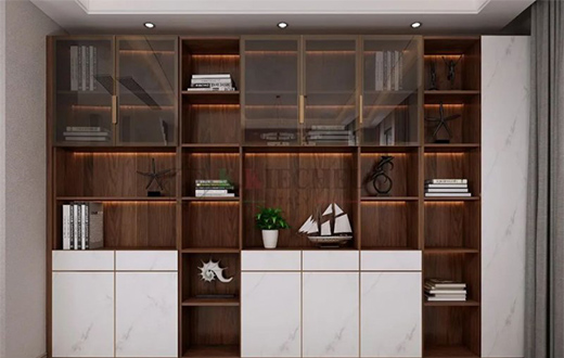 黑胡桃木的部分開放格與雪花白的定制門板相互結合,再適當增添一點茶玻進行裝飾,最終共同完成定制書柜的組合形式,讓這個小空間增添細節美感,結構帶來的層次感。