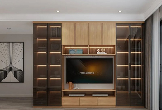 定制化酒柜可采用嵌入式設計,不僅能節省居家空間,而且還可以增強互動與交流性。兩側使用透光的定制茶玻門板,增強了視覺的可視化,同時也提升了欣賞效果。