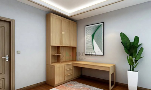 實木書柜書桌一體設計,既方便了日常辦公,又打造了一個便于交流的空間。超強的儲物收納功能讓空間的美得以保持,榆木淺色調營造出輕松安靜的感覺,不論是辦公還是閱讀都可以樂在其中。