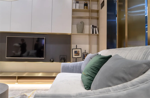 輕奢是近幾年流行起來的一種家裝風格,它也代表著人們對生活的一種態度,追求品質生活,享受輕奢帶來的愉悅。輕奢講究的是“簡單”和“奢華”之間的平衡,主要以淺色系為主,黑白灰作為基礎色,金屬元素進行點綴,材料上多選用大理石花紋、玻璃柜等營造氛圍。