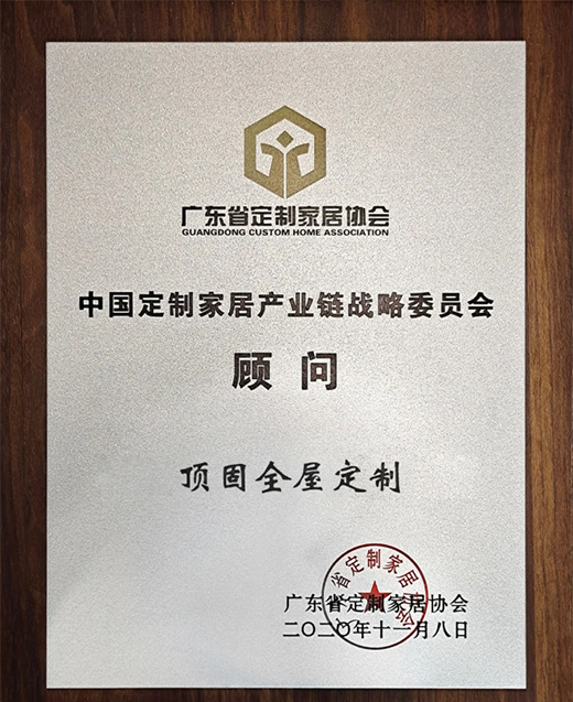 頂固全屋定制榮獲“2020中國定制家居產業鏈戰略委員會顧問”稱號