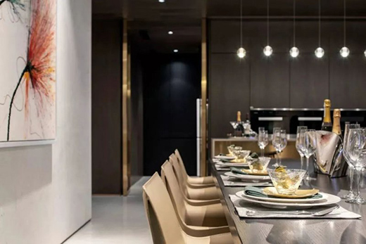 藉由洗鏈線條與細膩工藝語匯,成就環境性格與優雅氛圍,并將時尚語匯與大器空間進行重釋,萃取特色作為視覺符號,令空間宛若生活藝術居所。