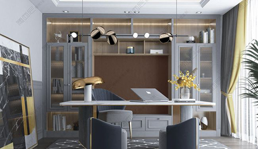 書房是放心身心、陶冶情操的空間,木質紋理與淺灰色組成的書柜,在色彩與材料的搭配中重塑時尚,渲染出奢華有度、優雅有型的空間格調,打造出舒適安靜的學習、工作空間。迷人的圓角造型、柔美的曲線,以及干練的線條感,簡而有味。