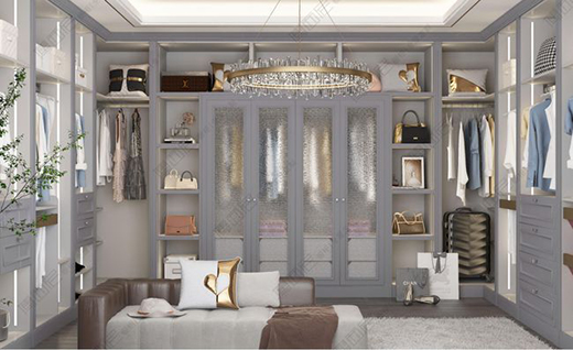 相較于重金屬風格,這套淺灰色環繞式衣帽間,更加清透自然。