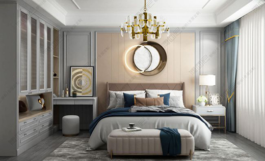 吊燈與壁燈的點綴,讓輕奢感撲面而來,金屬稍加運用就能有效地增加空間質感,輕奢風臥室,是享受生活的開始。
