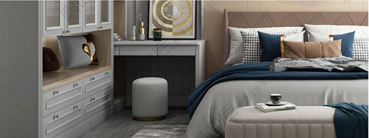 臥室是家中使用時間最長的區域,除了要舒適以外,功能性也尤為重要,利用空間做嵌入式梳妝臺,保證了空間的功能完善。